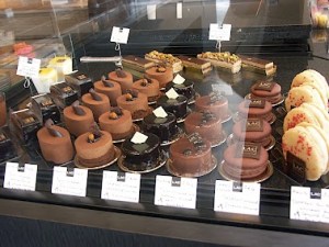 Of course once you got through all that it was actually a pretty decent salad but I think I can speak for both of us when I say we’d rather have our shrimp headless and vainless and never have to have seen the creature in it’s entirety. Ditto on removing the crab from it’s shell and the pieces of lobster tail from its shell. Seriously I just wanted my food “finished” before it arrived at the table. After the meal we were back on the shopping trail hitting as many stores as possible before taking off to Marseille for our last night in France. I decided this was the time I was going to get myself a french pastry. They looked so good in the store window and I just HAD to have one for later. So I went in and got one boxed up.
