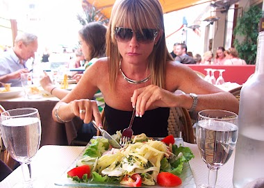 We found a nice outdoor street cafe and sat down to look over the menu. We both settled on a seafood salad and some bottled water and felt pretty confident in our choices. We nibbled on some french bread while waiting for the salads to arrive. All throughout this trip we had been having issues with finding good/healthy food that we actually like and here we figured we had found a good safe choice. But when the salads arrived we were no longer convinced. There were prawns on top and they still had their heads on! Ewww, it was gross. I know they have heads but I just never expected to have to look at their funny little eyes staring back at me.
