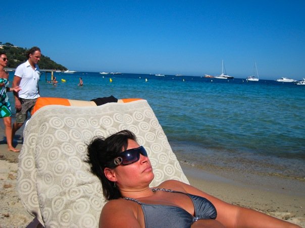hat commercial “Bain De Soleil” for the St. Tropez tan and have always wanted to go there to see if the tan was different. That might sound silly to you but I am a tanning expert – seriously if there were credentials for getting the perfect tan, I’d have them. Anyway,the aim was to go to Niki Beach because it’s famous and sounded very swanky, but basically any beach would have been fine. We got up (way before 1:00 pm), got dressed and headed out to breakfast in Cannes. At the time food was an issue with me as I wasn’t a meat eater so finding the right place was a bit of work, but eventually we did. Breakfast was okay and yes that’s about it; just okay.