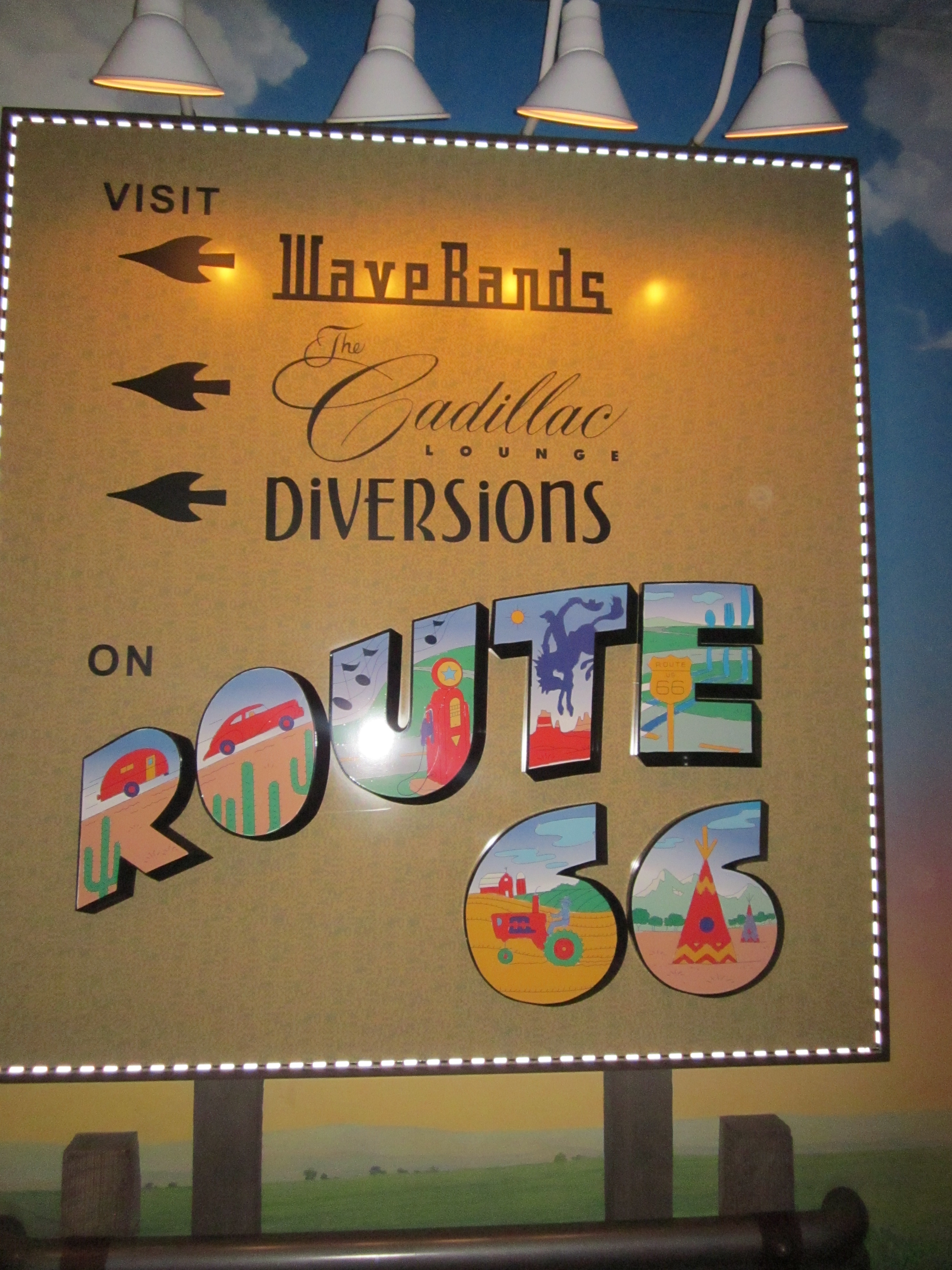 At night the atmosphere is very different. By 11 pm the halls are empty and there is little to no night life. What is available is all in the same area on Route 66. There is a piano player (classical) at the Cadillac Lounge, there is a theme (80’s, disco and such) in the Wave room and one night they had a deck party that was pirate themed with fireworks and a great show up on deck. This was completed by a late night buffet (not midnight but 10:30-11:30pm only). It was a great deck party with all the Disney characters joining in the fun on stage. Everyone was given pirate bandanas and the kids wore more elaborate customs and makeup. When it was over they played movie on the big screen.